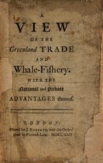 Henry Elking. A view of the Greenland trade and whale-fishery. With the national and private advantages thereof. Lonton: Printed for J. Roberts, near the Oxford-Arms in Warwick-Lane, 1772. 68 p. Full text. | |