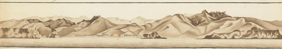 On the 19th of January about 6 in the afternoon we observed the land to leeward, which we discovered to be the Cavallos, a group of Islands about thirty miles from the Bay of Islands. On the twentieth at daylight we observed Cape Brem, a drawing of which I took whilst in a [indecipherable], which last the greater part of the day.