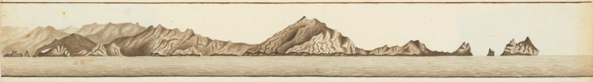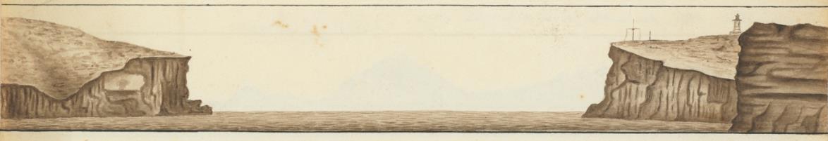 On the 19th of January about 6 in the afternoon we observed the land to leeward, which we discovered to be the Cavallos, a group of Islands about thirty miles from the Bay of Islands. On the twentieth at daylight we observed Cape Brem, a drawing of which I took whilst in a [indecipherable], which last the greater part of the day.